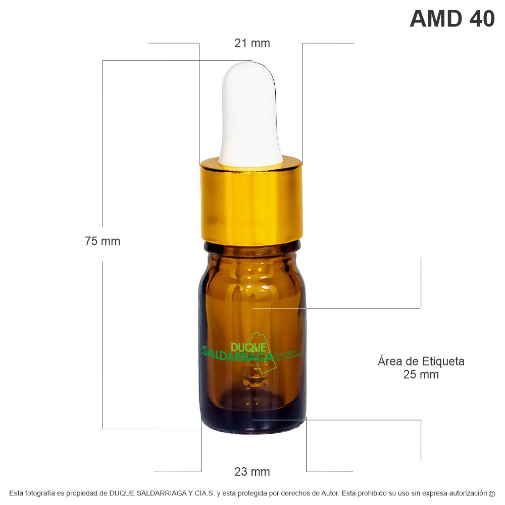 Gotero X 5 ML Ámbar Con Tapa Oro